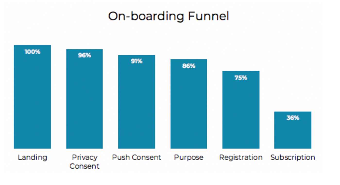 圖中我們清楚的看出來從Registration到Subscription有很大的流失,為了辨別原因,可以從Sankey圖找出更深入的流失頁面或是步驟。因為大部分用戶在註冊頁面後直接流失,所以還需要通過其他數據維度進一步研究,例如新用戶與舊用戶的比較。通過數據支持的假設,就能設計出適合的onboarding流程。